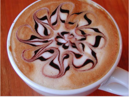 | Рисунки на кофе появляются при вливании молока, а точнее, густой молочной пены в кофе.